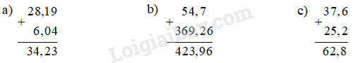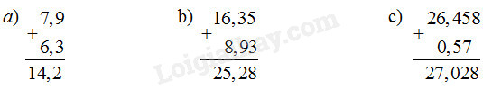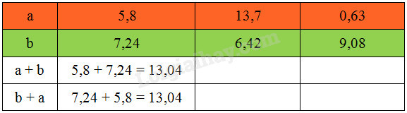 b) Thực hiện phép cộng rồi dùng tính chất giao hoán để thử lại :