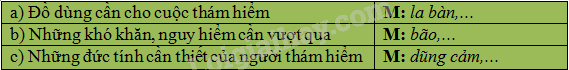 Tìm những từ ngữ liên quan đến hoạt động thám hiểm:
