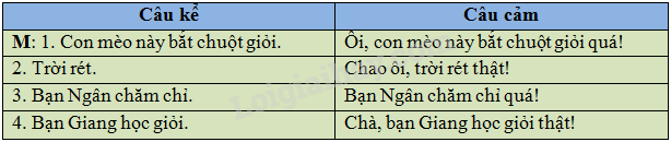 Để chuyển các câu kể thành câu cảm ta làm như sau: