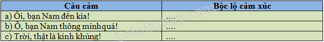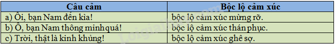 Những câu cảm sau đây bộc lộ cảm xúc gì?
