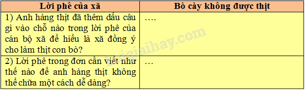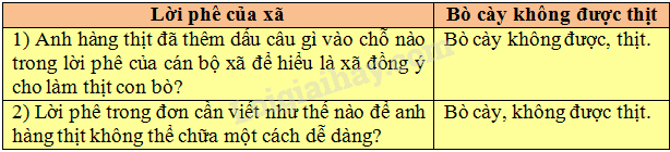 Em đọc thật kĩ lời xã phê vào đơn: “Bò cày không được thịt” và thử các trường hợp đặt dấu phẩy ở những vị trí khác nhau xem câu thay đổi như thế nào?