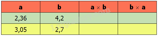 a) Tính rồi so sánh giá trị của \(a\times b\) và \(b \times a\) :