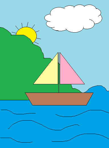 Vẽ hình theo mẫu, lưu bài vẽ có tên Thuyền và biển.