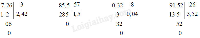 Vận dụng kiến thức về phép chia số thập phân cho một số tự nhiên vừa học rồi thực hiện phép tính.