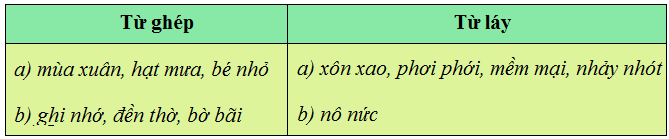 Xếp những từ phức được in nghiêng trong các câu dưới đây thành hai loại: từ ghép và từ láy. Biết rằng những tiếng in đậm là những tiếng có nghĩa.