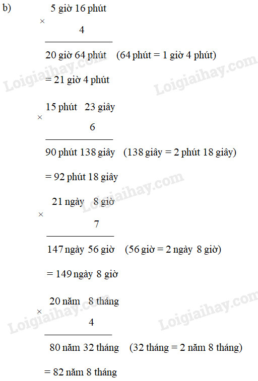 B. Hoạt động thực hành – Bài 87 : Nhân số đo thời gian với một số