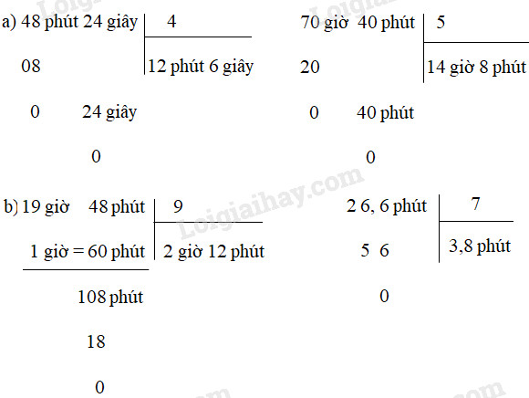a) 48 phút 24 giây : 4