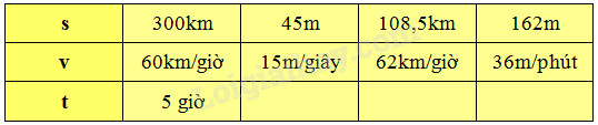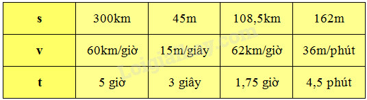 – Muốn tìm thời gian ta lấy quãng đường chia cho vận tốc