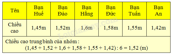 – Để tìm chiều cao trung bình của nhóm ta lấy tổng số đo chiều cao chia cho tổng số bạn trong nhóm.