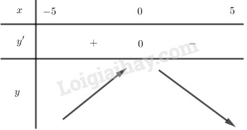Ta có: \(y’ = \dfrac{{ – x}}{{\sqrt {25 – {x^2}} }} = 0 \Leftrightarrow x = 0\).