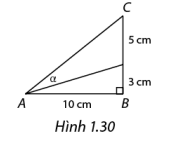 Cho góc \(\alpha \) như trong Hình 1.30. Tính \(\tan \alpha \).