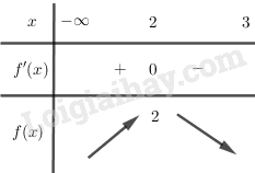 Hàm số đạt cực đại tại điểm x = 2; f(2) = 2.