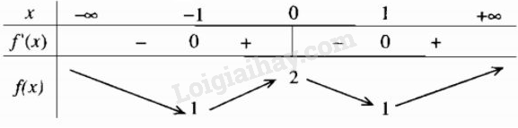 Hàm số đạt cực đại tại điểm \(x = 0,f(0) = 2\) và đạt cực tiểu tại các điểm x = -1 và x = 1; \(f( – 1) = f(1) = 1\)