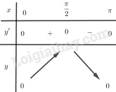 Lập bảng biến thiên trên đoạn \(\left[ {0,\pi } \right]\)