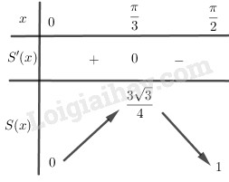 Bài toán quy về: Tìm \(x \in \left( {0;{\pi  \over 2}} \right)\) sao cho tại điểm đó S đạt giá trị lớn nhất trên khoảng \(\left( {0;{\pi  \over 2}} \right)\)