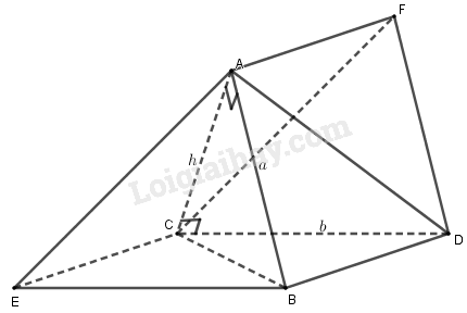 \( \Rightarrow {V_{C.ABE}} = \dfrac{1}{3}{S_{ABE}}.AC\)\( = \dfrac{1}{3}.\dfrac{{ab\sqrt 3 }}{4}.h = \dfrac{{abh\sqrt 3 }}{{12}}\)