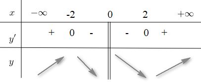 \(y’ = 0 \Leftrightarrow x =  \pm 2\)