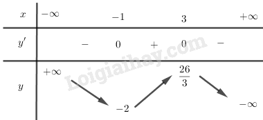 Hàm số nghịch biến trên \(\left( { – \infty ; – 1} \right)\) và \(\left( {3; + \infty } \right)\).