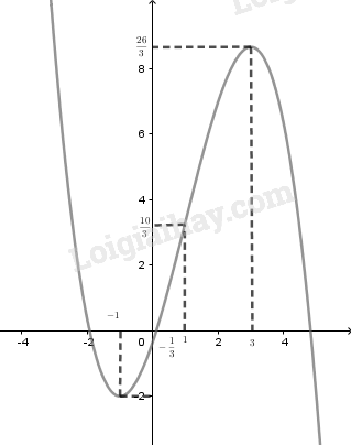 Điểm cực đại \(\left( {3;\frac{{26}}{3}} \right)\) và điểm cực tiểu \(\left( { – 1; – 2} \right)\).