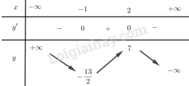 Hàm số đạt cực tiểu tại \(x =  – 1,{y_{CT}} =  – \frac{{13}}{2}\).