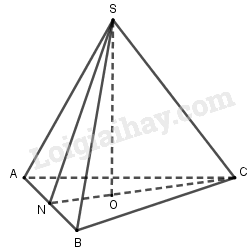 Tam giác \(SON\) vuông tại \(O\) có \(SO = \sqrt {S{N^2} – O{N^2}} \) \( = \sqrt {\dfrac{{75{a^2}}}{{36}} – \dfrac{{3{a^2}}}{{36}}}  = a\sqrt 2 \)