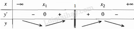 Hàm số đồng biến trên mỗi khoảng \(\left( {{x_1};1} \right)\) và \(\left( {1;{x_2}} \right)\).