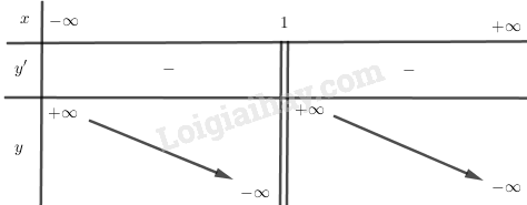 Do đó hàm số nghịch biến trên mỗi khoảng \(\left( { – \infty ;1} \right)\) và \(\left( {1; + \infty } \right)\)
