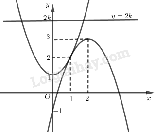 \( \Leftrightarrow \left[ \begin{array}{l} – {x^2} + 4x – 1 = 2k\\{x^2} + 1 = 2k\end{array} \right.\)