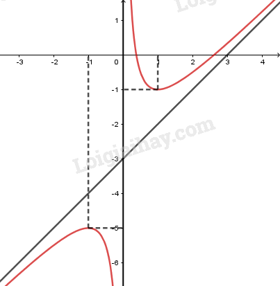 \(\mathop {\lim }\limits_{x \to  \pm \infty } \left[ {y – \left( {x – 3} \right)} \right] = \mathop {\lim }\limits_{x \to  \pm \infty } \frac{1}{x} = 0\) nên TCX: \(y = x – 3\).
