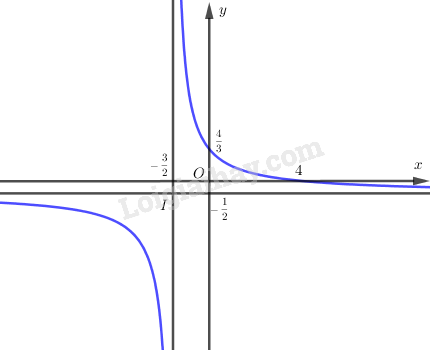Đồ thị hàm số có đường tiệm cận đứng \(x =  – \dfrac{3}{2}\), tiệm cận ngang \(y =  – \dfrac{1}{2}\).
