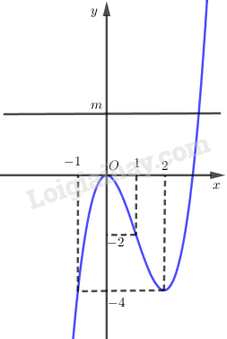 Phương trình (*) có \(3\) nghiệm phân biệt khi và chỉ khi đường thẳng \(y = m\) cắt \(\left( C \right)\) tại \(3\) điểm phân biệt. Từ đó suy ra \( – 4 < m < 0.\)