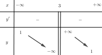 TXĐ: \(D = \mathbb{R}\backslash \left\{ 3 \right\}\).