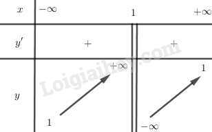 \(\mathop {\lim }\limits_{x \to {1^ + }} y =  – \infty ,\mathop {\lim }\limits_{x \to {1^ – }} y =  + \infty \) nên TCĐ \(x = 1\)