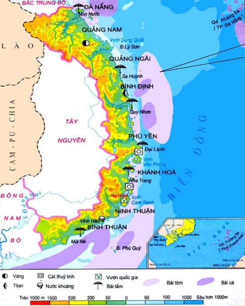 – Những bãi biển có giá trị du lịch nổi tiếng ở Bắc Trung Bộ và Duyên hải Nam Trung Bộ.