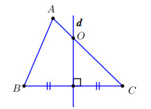 Gọi \(d\) là đường trung trực của đoạn thẳng \(BC \Rightarrow O \in d\).