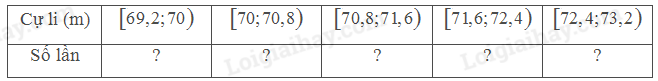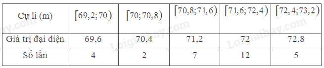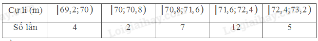 a) Cự li trung bình của mỗi lần ném là: \(\bar x = 71,6\left( m \right)\).