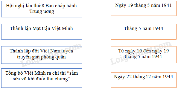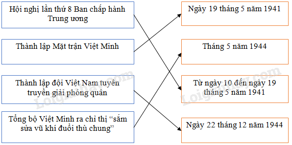 +) Nối nối những sự kiện trong khung màu xanh với những sự kiện trong khung màu đỏ cho đúng.