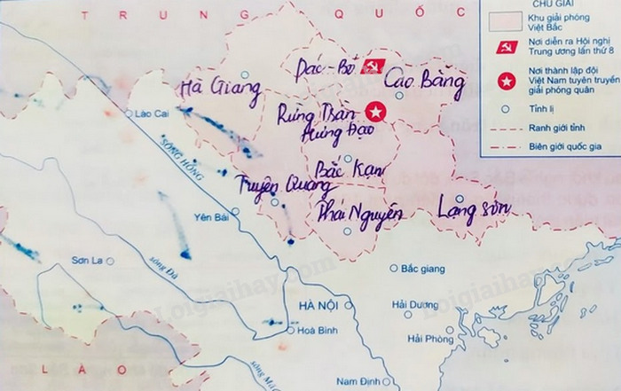Giải bài 1 trang 26 tập bản đồ Sử 9. Hãy điền các địa danh vào chỗ chấm là nơi diễn ra Hội nghị lần thứ 8 Ban chấp hành Trung ương