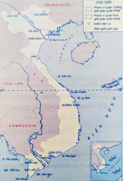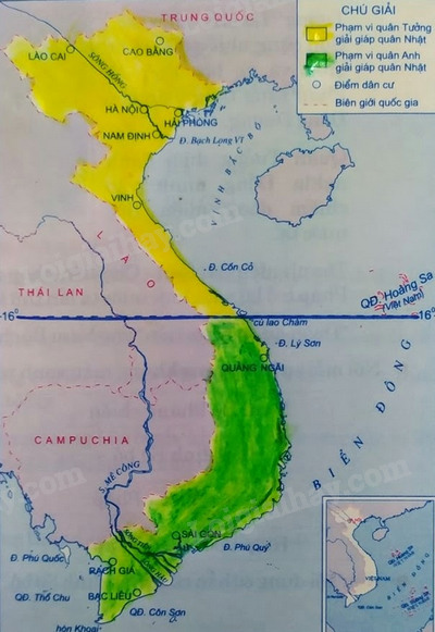 +) Tô màu khác nhau vào phạm vi quân Tưởng và quân Anh vào giải giáp quân Nhật trên đất nước ta.