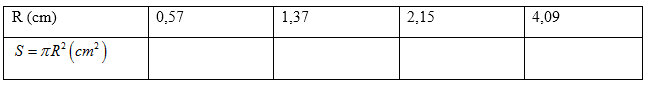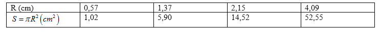 Do đó, \(R = \sqrt {\dfrac{{79,5}}{\pi }}  \approx 5,03cm\)