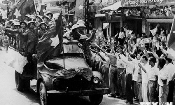 – Hình ảnh nhân dân Hà Nội vui mừng đón bộ đội vào tiếp quản thủ đô.