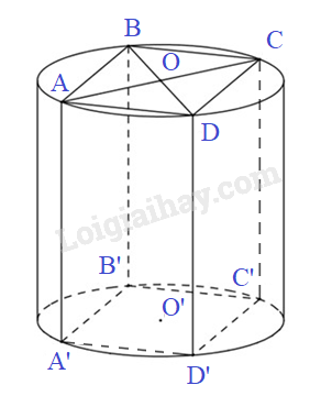 Hình trụ đã cho có đường cao bằng cạnh của hình lạp phương và bán kính đáy là bán kính đường tròn ngoại tiếp hình lập phương cạnh \(a\).