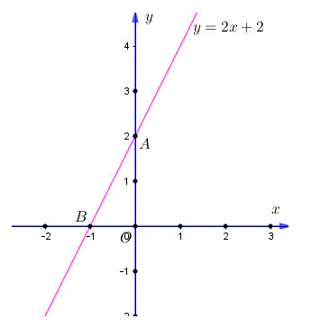 Vậy đồ thị hàm số \(y = 2x + 2\) là đường thẳng đi qua 2 điểm \(A\left( {0;2} \right);\,B\left( { – 1;0} \right)\)