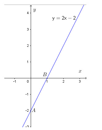Vậy đồ thị hàm số \(y = 2x – 2\) là đường thẳng đi qua 2 điểm \(A\left( {0; – 2} \right);\,B\left( {1;0} \right)\)