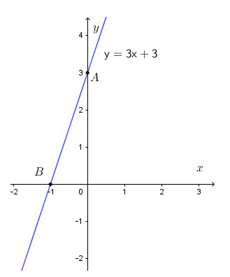 Vậy đồ thị hàm số \(y = 3x + 3\) là đường thẳng đi qua 2 điểm \(A\left( {0;3} \right);\,B\left( { – 1;0} \right)\)