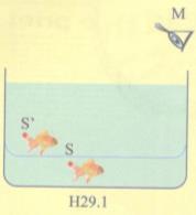 Từ trên không khí nhìn xuống một hồ nước, ta thấy đáy hồ và cá trong hồ ở gần mặt nước hơn so với độ sâu thực của chúng. Hình H29.1 mô tả mắt đặt tại vị trí M, ca tại vị trí A và S’ là ảnh của cá do mắt nhìn thấy qua mặt nước.