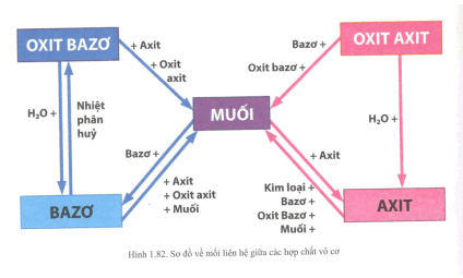 Viết phương trình phản ứng hoá học minh hoạ cho các mối liên hệ giữa các hợp chất vô cơ hình 1.82