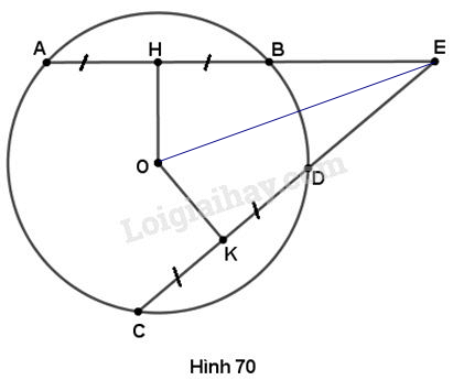 Ta có \(AB = CD\left( {gt} \right)\) nên \(OH = OK\) (vì hai dây bằng nhau thì cách đều tâm).