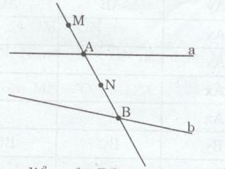 Vẽ đường thẳng MN cắt đường thẳng a tại A và cắt đường thẳng b tại B