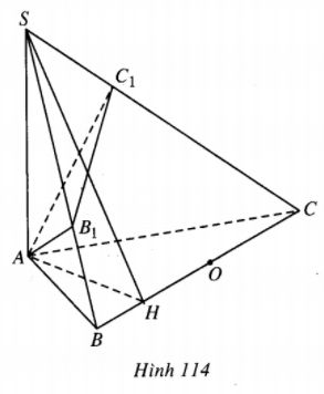 Cho tam giác ABC vuông ở A, AB = c,AC b. Trên đường thẳng d vuông góc với mp(ABC) tại A, lấy điểm  bất kì, \(S \ne A\) . Gọi B1, C1 lần lượt là hình chiếu của A trên SB, SC.